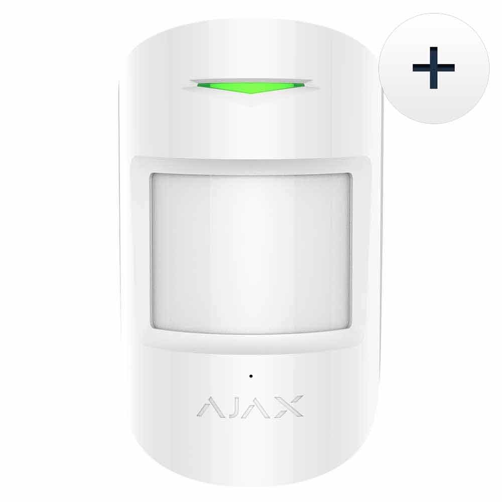 Ajax MotionProtect Plus är en husdjursimmun, trådlös rörelsedetektor som genom IR reagerar på rörelse och utlöser larm. Bra om du har fönsterpartier eller öppen spis som kan orsaka reflektion som ger falsklarm