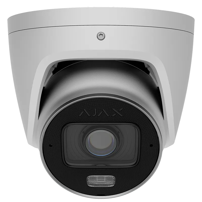 Ajax TurretCam HLVF är en trådbunden IP-kamera med varifokal (motoriserad) lins, hybridbelysning, AI, inbyggd mikrofon samt ljud- och larmingångar/-utgångar.
