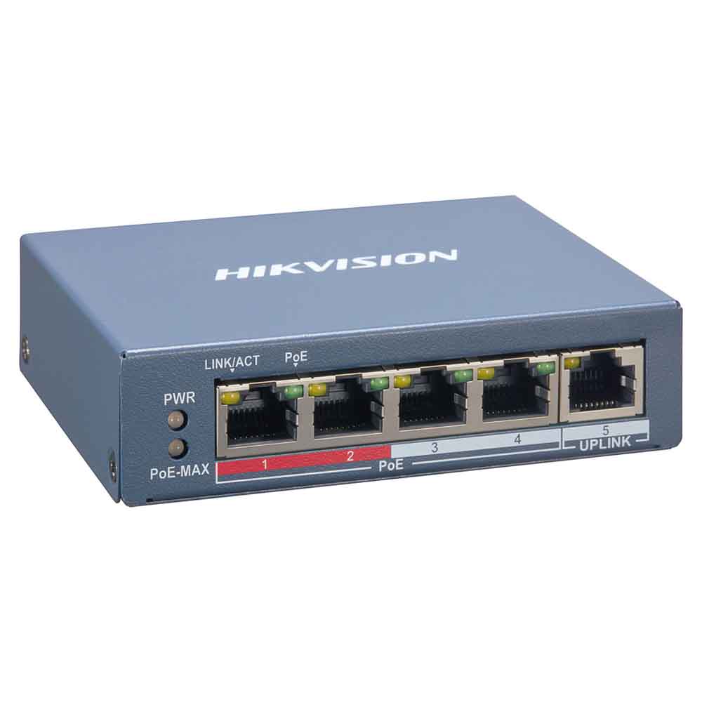 DS-3E1105P-EI är en PoE switch med 4 portar 10/100, smart managed. Man kan se nätverkets topologi, 7 dagars log på portstatistik, övervakning, få push.